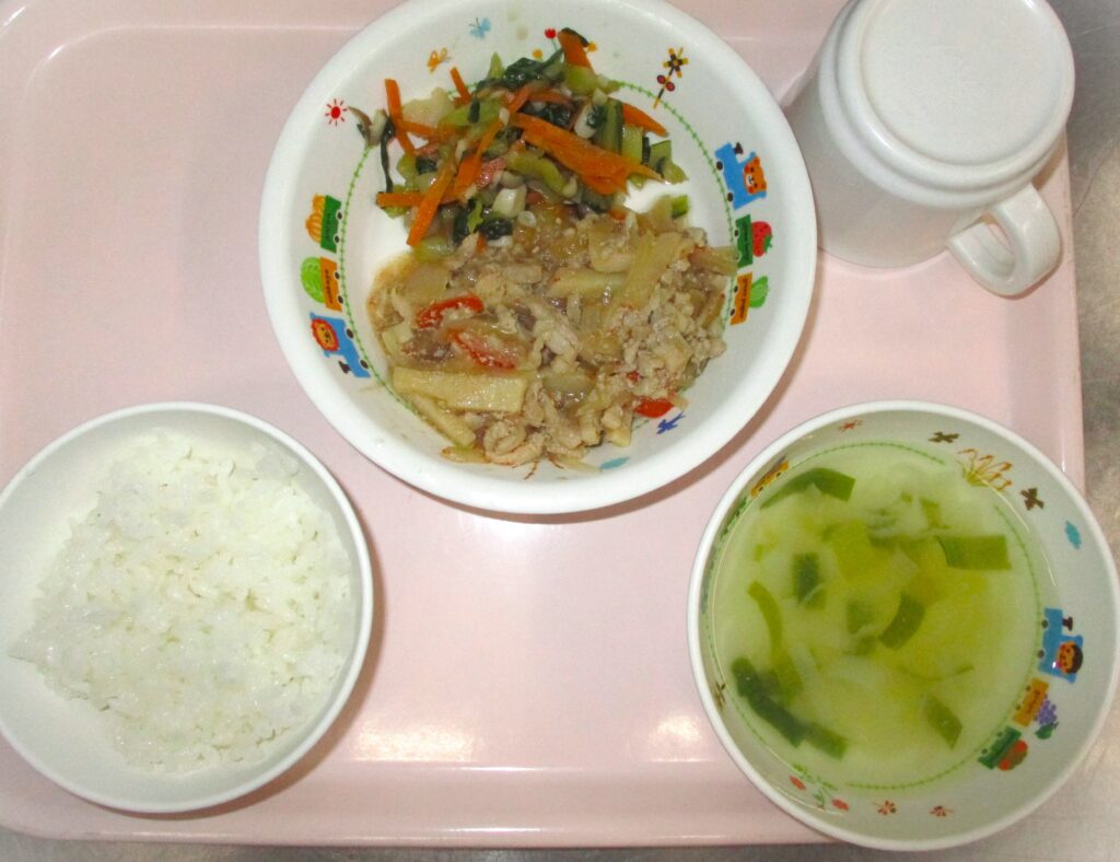 豚肉と🥬野菜の千切り炒め 2023.11.02 32view 大宮たんぽぽ保育園 今日の給食 🍚ごはん・スープ🍲豚肉と🥬野菜の千切り炒め・チンゲン菜の和え物 いただきます。 ◀ 前へ | たんぽぽ保育園のブログ 一覧 | 次へ ▶ 関連記事 2026.04.281歳児 こいのぼり🎏 2026.04.28鶏野菜炒め🥕🧅 2026.04.275歳児 カラーコーンゲーム✨ 2026.04.27🐟白身魚のおろし煮🍽️ たんぽぽ保育園のブログ