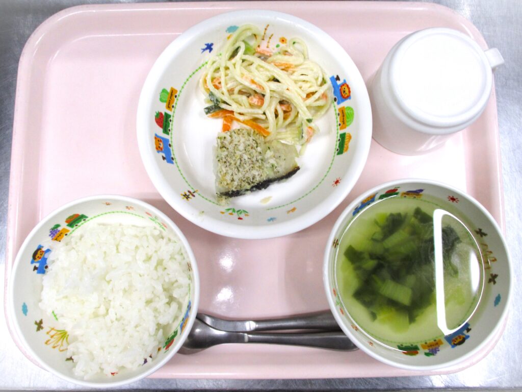 🐟白身魚のパン粉焼き 2023.11.13 41view 大宮たんぽぽ保育園 今日の給食 ごはん🍚チンゲン菜🥬のスープ🐟白身魚のパン粉焼き🥗スパゲティサラダ いただきます。 ◀ 前へ | たんぽぽ保育園のブログ 一覧 | 次へ ▶ 関連記事 2026.04.281歳児 こいのぼり🎏 2026.04.28鶏野菜炒め🥕🧅 2026.04.275歳児 カラーコーンゲーム✨ 2026.04.27🐟白身魚のおろし煮🍽️ たんぽぽ保育園のブログ