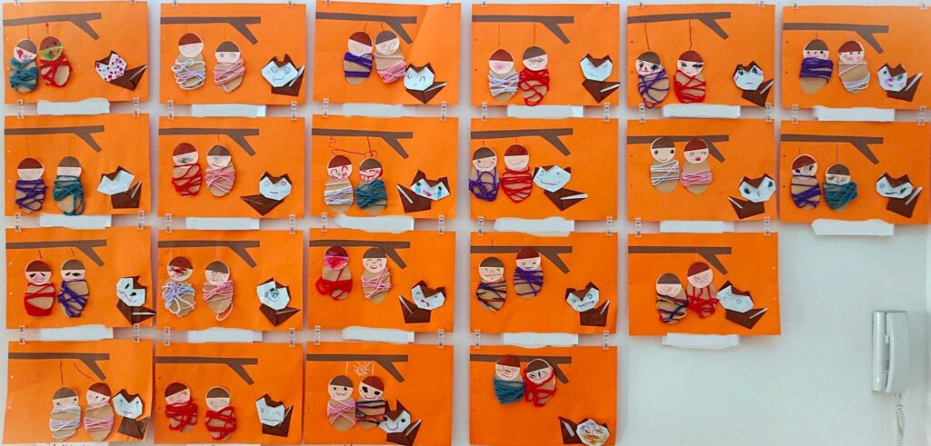大宮たんぽぽ保育園 毛糸と折り紙で制作