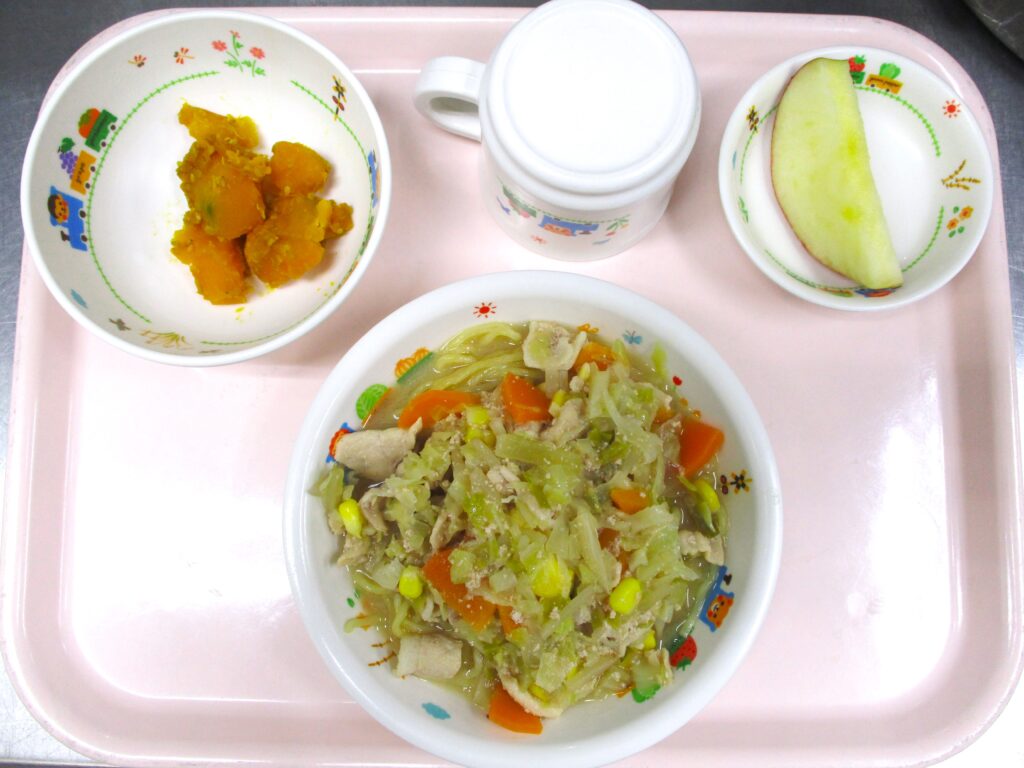 🍜味噌ラーメン🎃大学かぼちゃ🍎りんご
