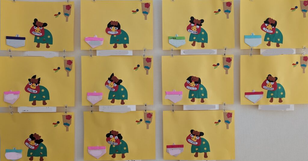 大宮たんぽぽ保育園 制作 獅子舞🪁羽子板とコマ♪
