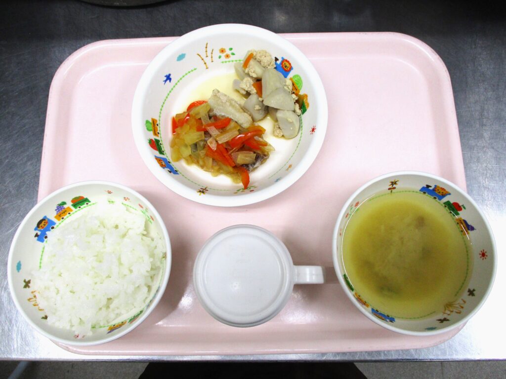 👨🍳今日の給食🌈アジの南蛮漬け風🐟 2024.02.06 50view 大宮たんぽぽ保育園🌈 今日の給食🍽️ 🍚ごはん なめこのみそ汁🍜 アジの南蛮漬け風🐟 里芋のそぼろ煮✨ いただきます ◀ 前へ | たんぽぽ保育園のブログ 一覧 | 次へ ▶ 関連記事 2026.04.242歳児 こいのぼり製作🎏 2026.04.24豆腐ハンバーグ🍽️ 2026.04.231歳児 お散歩 2026.04.22🐟ぶりの照り焼き🍽️ たんぽぽ保育園のブログ