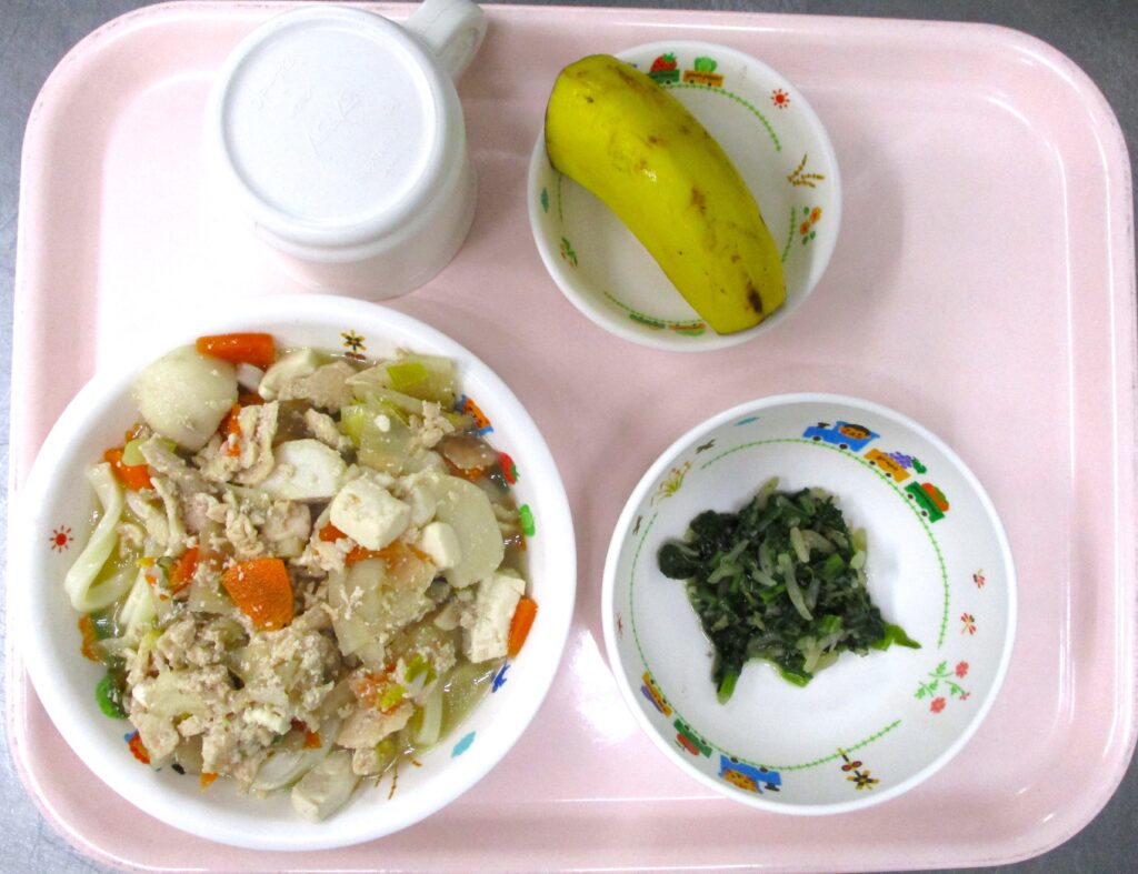 🍜けんちんうどん 🥗ほうれん草の磯和え 🍌バナナ