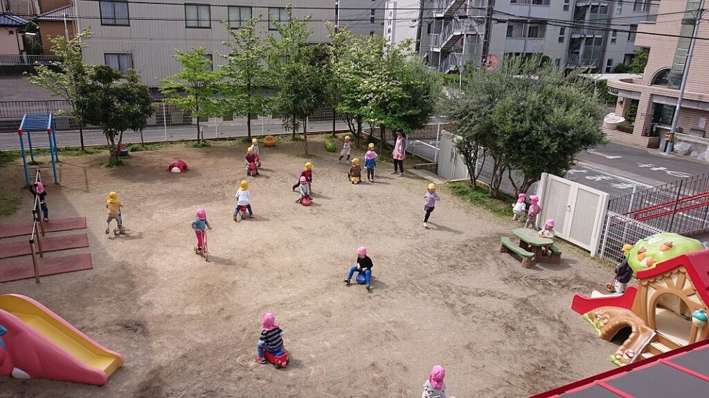 たんぽぽ保育園 園庭で元気な子どもたち