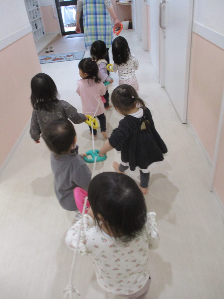 大宮たんぽぽ保育園 列車ごっこで園内探検