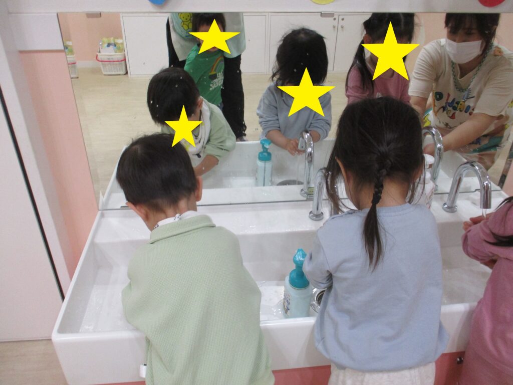 給食前の手洗い 2024.05.01 62view 毎日の日課、給食前の手洗い。みんな並んで順番に手を洗います。 指と指の間もしっかり洗っていきれいにしましょう。 給食前だけでなく、おやつ前や外から帰ってきた時にも、手洗いは大切です。 ◀ 前へ | たんぽぽ保育園のブログ 一覧 | 次へ ▶ 関連記事 2026.04.242歳児 こいのぼり製作🎏 2026.04.24豆腐ハンバーグ🍽️ 2026.04.231歳児 お散歩 2026.04.22🐟ぶりの照り焼き🍽️ たんぽぽ保育園のブログ