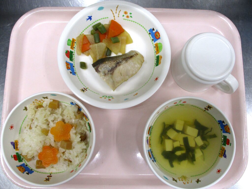 大宮たんぽぽ保育園🌈 竹の子ごはん🍚 2024.05.02 55view さいたま市北区 大宮たんぽぽ保育園🌈 今日の給食 竹の子ごはん🍚すまし汁🍜ブリの照り焼き🐟大根の煮物 ◀ 前へ | たんぽぽ保育園のブログ 一覧 | 次へ ▶ 関連記事 2026.04.242歳児 こいのぼり製作🎏 2026.04.24豆腐ハンバーグ🍽️ 2026.04.231歳児 お散歩 2026.04.22🐟ぶりの照り焼き🍽️ たんぽぽ保育園のブログ