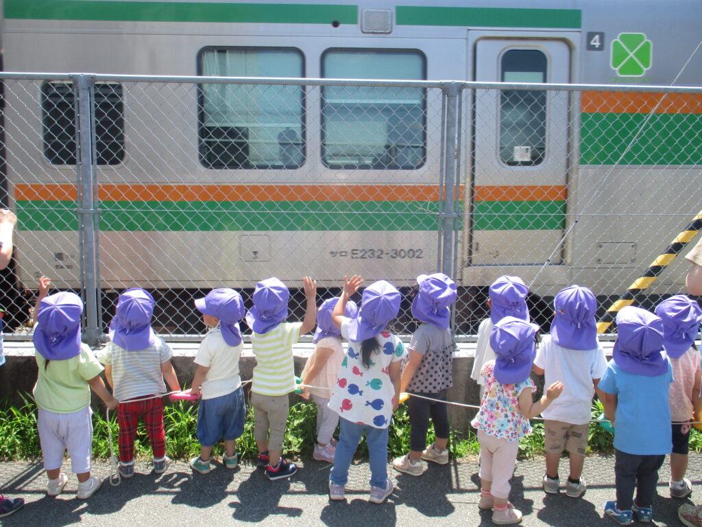 駅に電車を見にお散歩へ🚃♪ 2024.06.11 67view 大宮たんぽぽ保育園 今日はいちご組さんは土呂駅にお散歩へ行きました♪いちご組さんはとってもお散歩が上手です🍓お散歩紐を持ち駅に向かいました💪 駅に着き電車が来るまで水分補給をしながら待ちました😄 タイミングがよく特急電車や貨物列車や宇都宮線とたくさんの電車を見ることができました✨ 目の前で大きな車輪や車両を見ることができ子どもたちは大喜びしていました🌈 ◀ 前へ | たんぽぽ保育園のブログ 一覧 | 次へ ▶ 関連記事 2026.04.275歳児 カラーコーンゲーム✨ 2026.04.27🐟白身魚のおろし煮🍽️ 2026.04.242歳児 こいのぼり製作🎏 2026.04.24豆腐ハンバーグ🍽️ たんぽぽ保育園のブログ