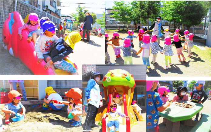 お外遊びが心地よい季節です。園庭でげんきにあそぶこどもたちの様子♪
