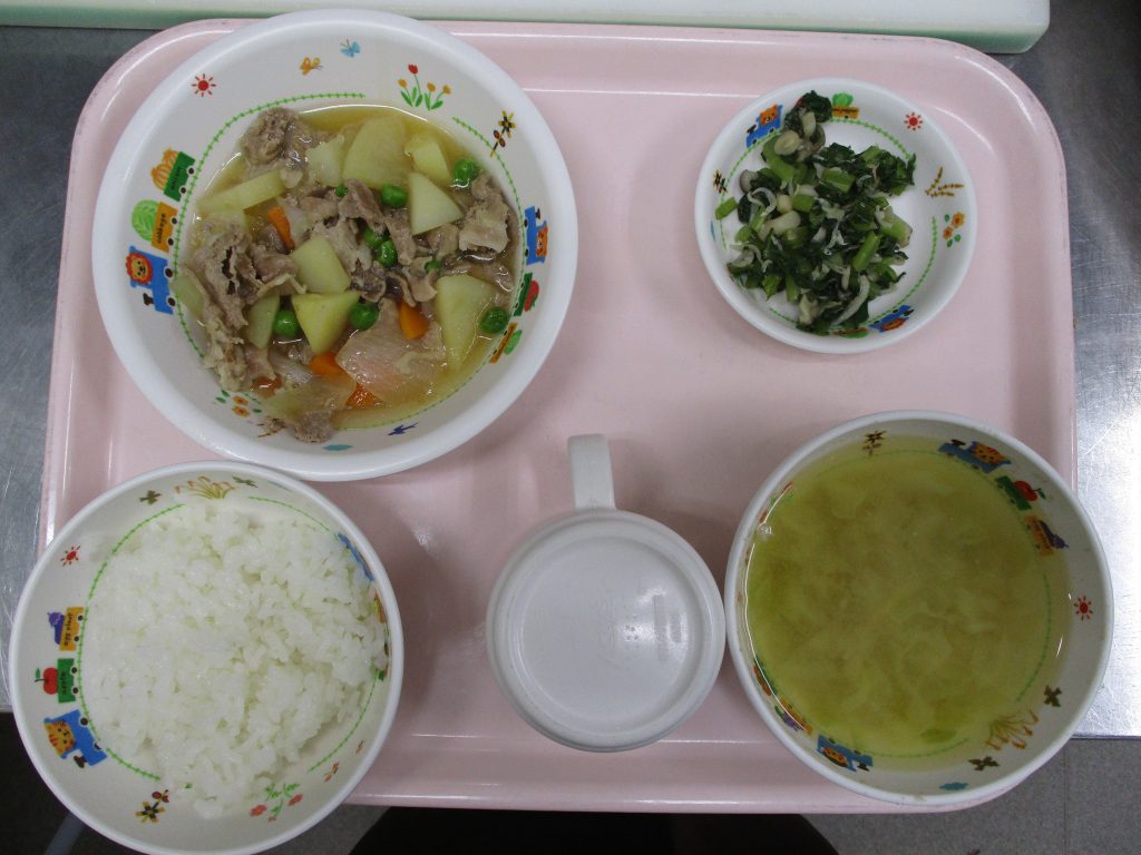 肉じゃが🥔 2024.07.26 46view 🍚ごはん🥔肉じゃが🍜みそ汁🥬小松菜のしらす和え ◀ 前へ | たんぽぽ保育園のブログ 一覧 | 次へ ▶ 関連記事 2026.04.275歳児 カラーコーンゲーム✨ 2026.04.27🐟白身魚のおろし煮🍽️ 2026.04.242歳児 こいのぼり製作🎏 2026.04.24豆腐ハンバーグ🍽️ たんぽぽ保育園のブログ