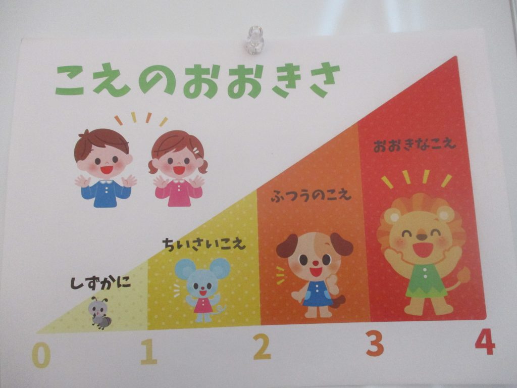 なつめ組さんでは、お部屋の中での声の大きさを活動の時間によって変えられるようにしてます!