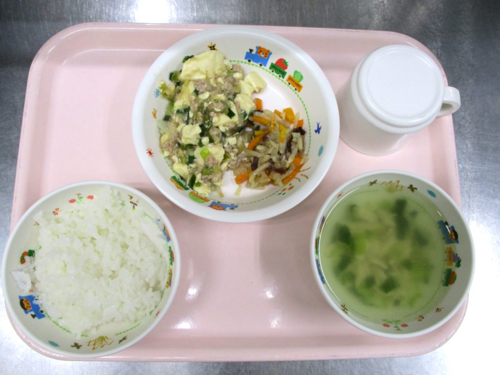 マーボー豆腐🍲 2024.07.30 39view 大宮たんぽぽ保育園🌈 今日の給食🍽️ 🍚ごはん🍜鶏だしスープ🍲マーボー豆腐🥗もやしの中華サラダ いただきます ◀ 前へ | たんぽぽ保育園のブログ 一覧 | 次へ ▶ 関連記事 2026.04.275歳児 カラーコーンゲーム✨ 2026.04.27🐟白身魚のおろし煮🍽️ 2026.04.242歳児 こいのぼり製作🎏 2026.04.24豆腐ハンバーグ🍽️ たんぽぽ保育園のブログ