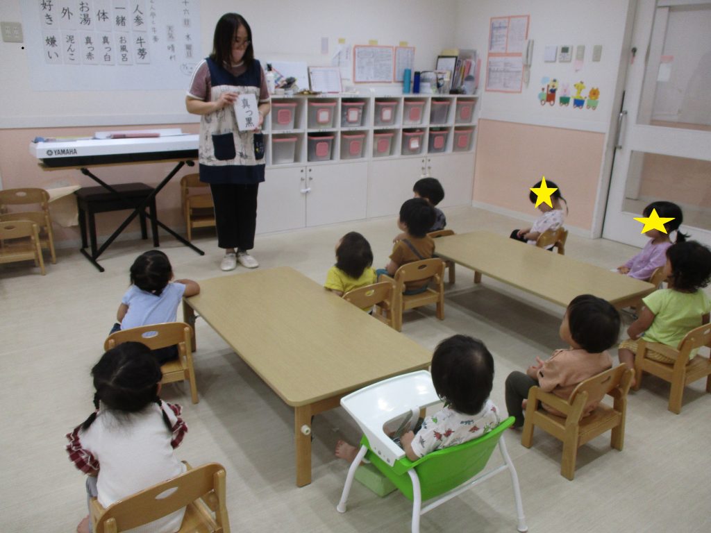 1歳児あんず組は朝の会の時に毎日絵本の読み聞かせをします♪