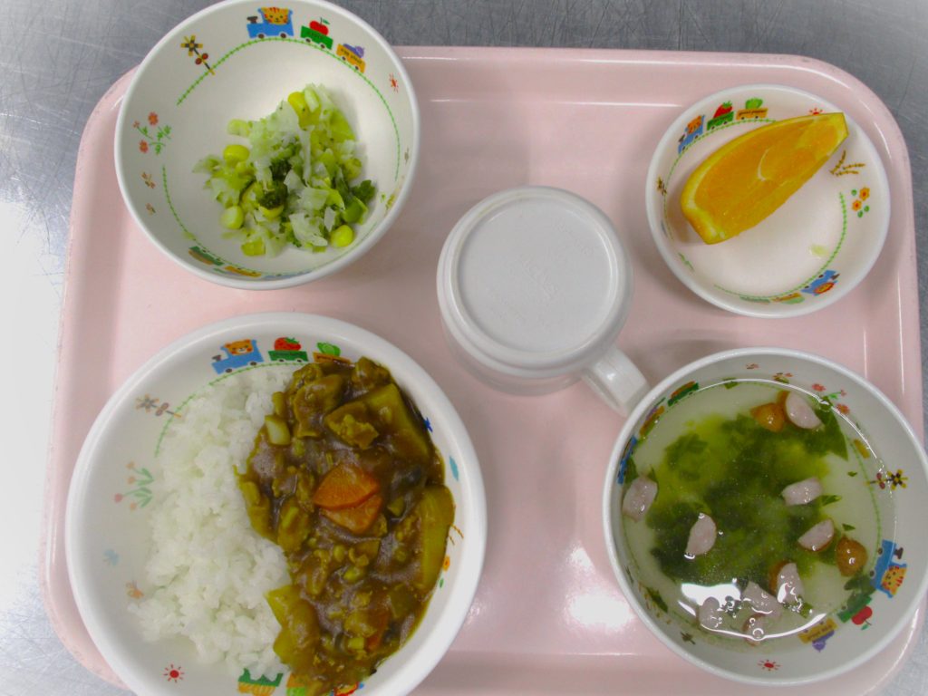 今日の給食 🍛秋野菜カレー 🍽️チンゲン菜のスープ 🥗フレンチサラダ