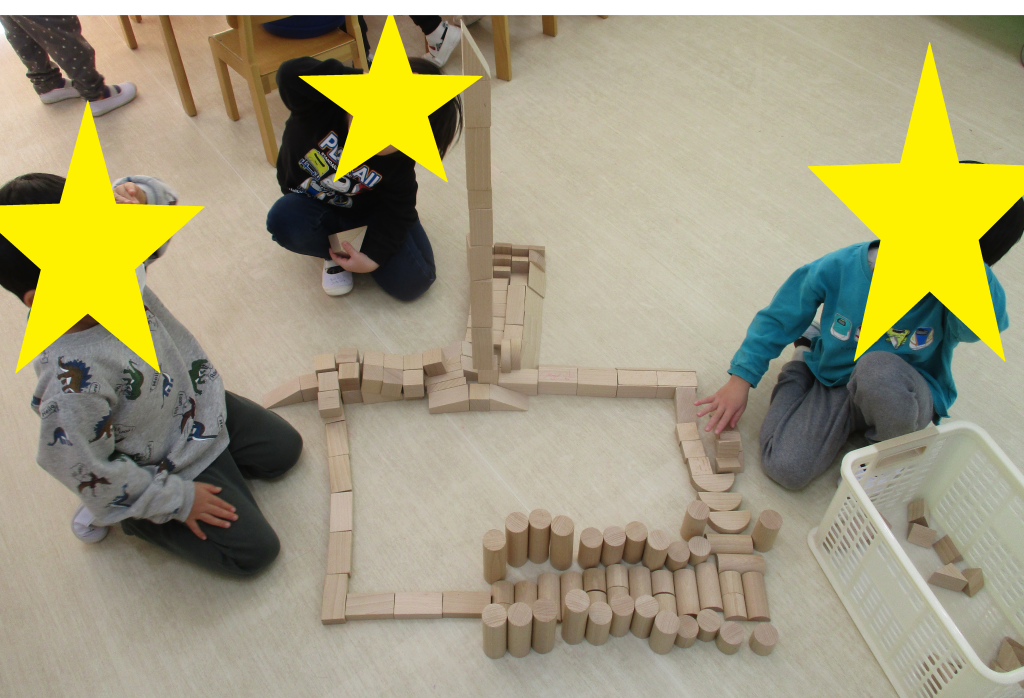 その後は、お部屋で室内遊びをし積み木で点検所を作ったり、メルちゃんで遊んだりしました❤️