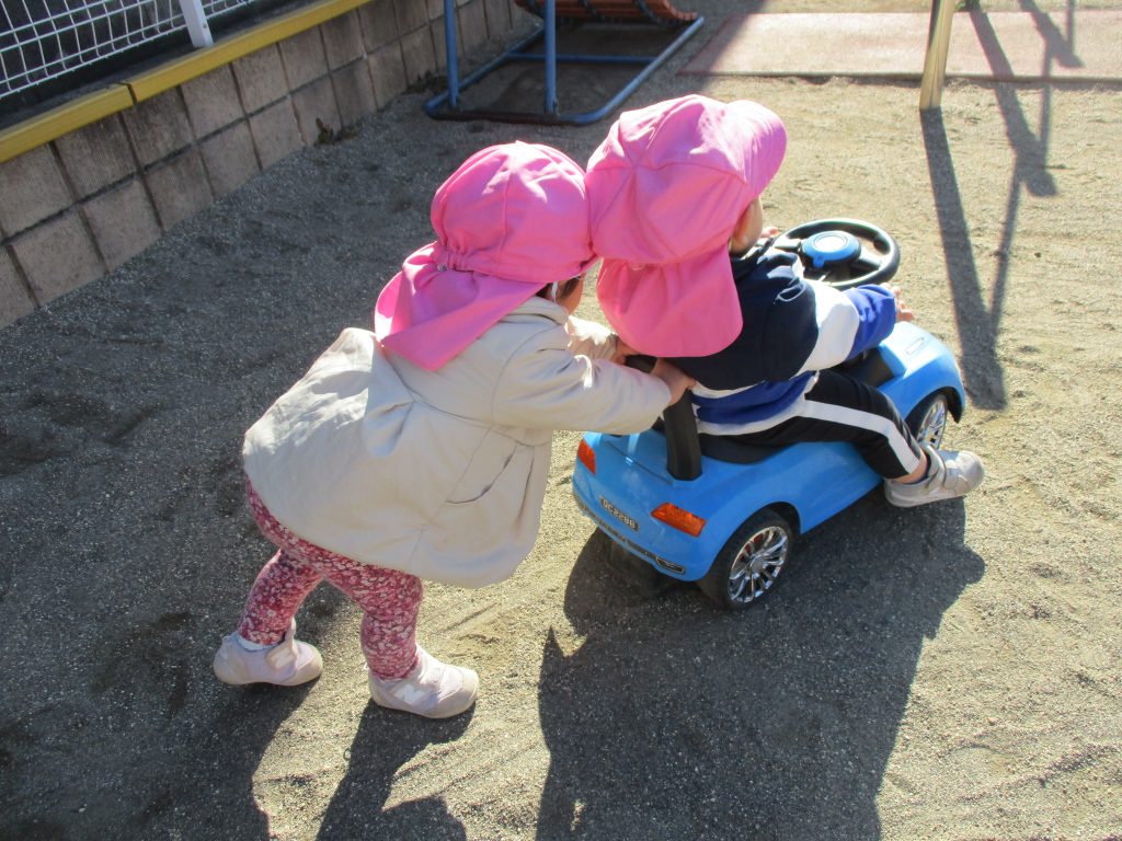 「押してあげるから 次乗せて!!」