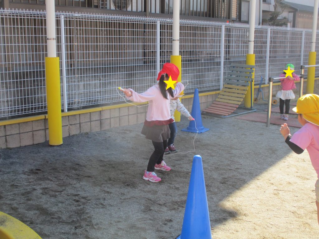 外遊びでは、年中、年長クラスのお友達が縄跳びを練習していました!!