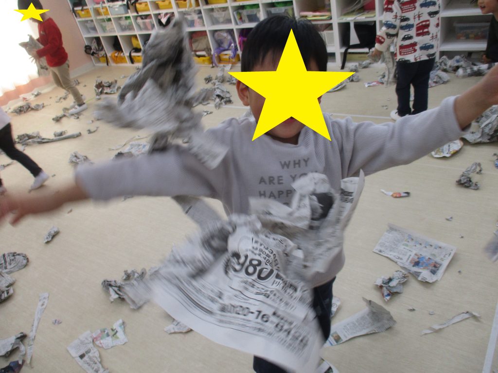 今日は、新聞紙を使って遊びました!