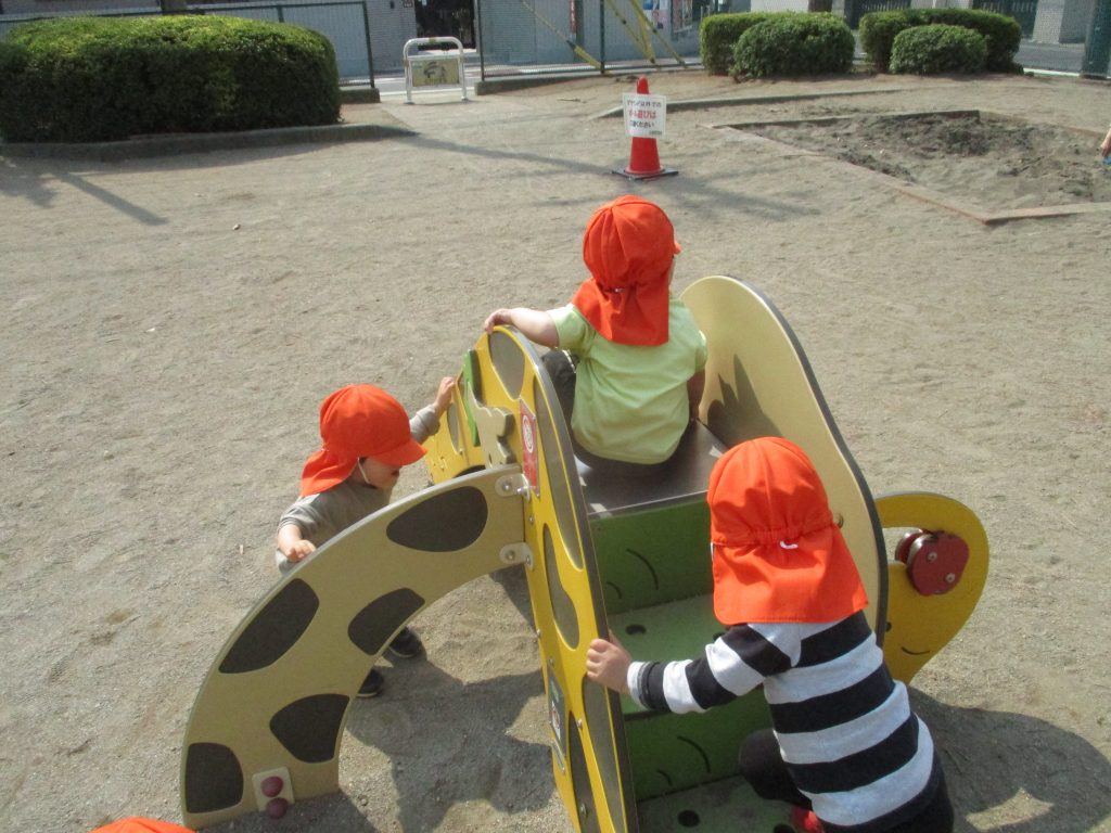 1歳児クラスのあんず組のお友達はやはりまだ少し小さく、月齢が遅いお友だちにはキリンさんのすべり台が人気です★
