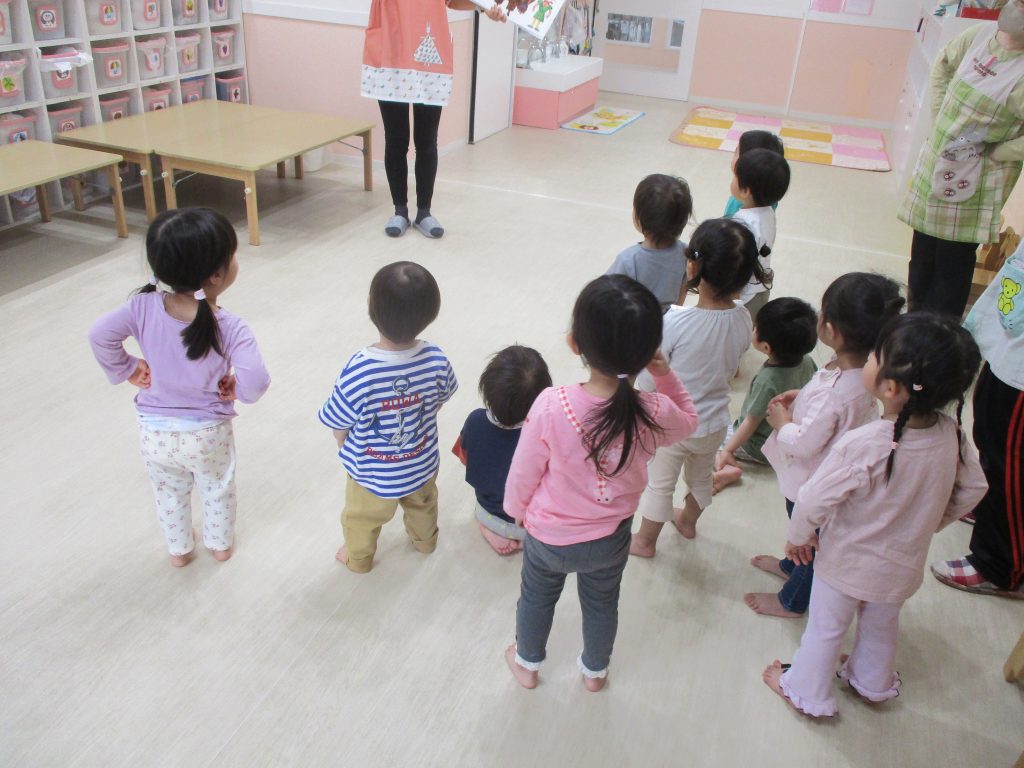 お部屋に戻ってから「できるかな?」の絵本歌に合わせて