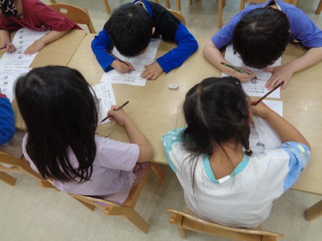 鉛筆の持ち方を伝えると「この持ち方かっこいいね、小学生の