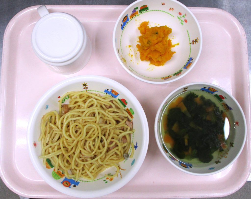 🍝和風スパゲティ🍝 2025.06.04 100view 大宮たんぽぽ保育園🌈 今日の給食🍽️ 🍝和風スパゲティ 🍲コンソメスープ かぼちゃサラダ🥗 いただきます。 ◀ 前へ | たんぽぽ保育園のブログ 一覧 | 次へ ▶ 関連記事 2026.04.27🐟白身魚のおろし煮🍽️ 2026.04.242歳児 こいのぼり製作🎏 2026.04.24豆腐ハンバーグ🍽️ 2026.04.231歳児 お散歩 たんぽぽ保育園のブログ