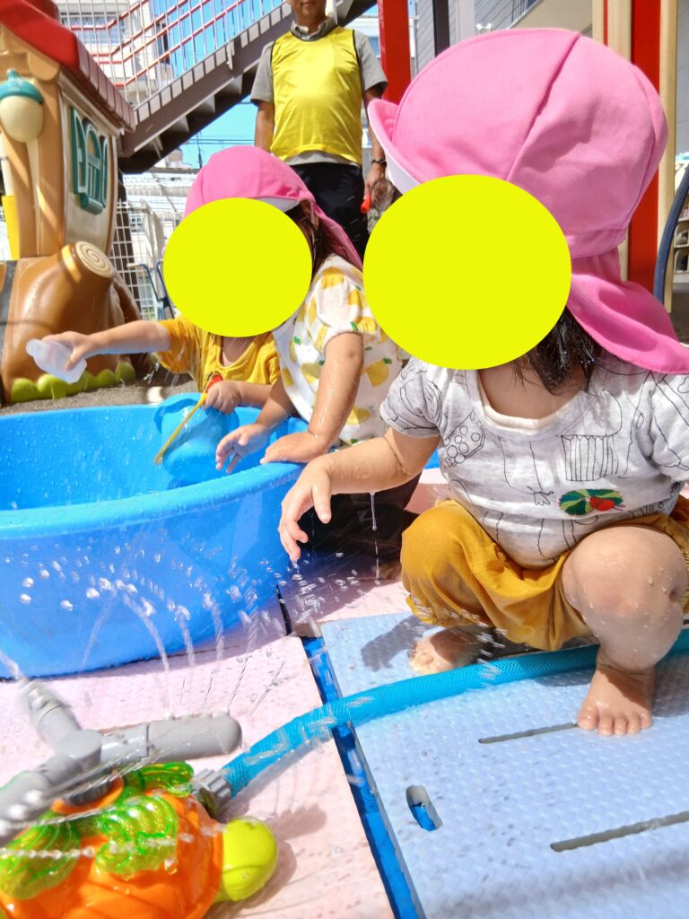 水遊びをしましたよ🌊🎶 2025.08.08 147view 大宮たんぽぽ保育園 今日は水遊びを行いました🌊 タライの中にある好きなおもちゃを見つけて水を掬って遊んだり、水の中に手を入れたりと水遊びを楽しんでいました✨ また、カメのスプリンクラーもあり、近くに行って水を浴びて楽しむお友だちもいましたよ😆🎶 ◀ 前へ | たんぽぽ保育園のブログ 一覧 | 次へ ▶ 関連記事 2026.04.242歳児 こいのぼり製作🎏 2026.04.24豆腐ハンバーグ🍽️ 2026.04.231歳児 お散歩 2026.04.22🐟ぶりの照り焼き🍽️ たんぽぽ保育園のブログ