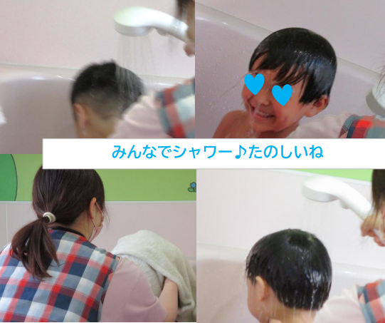 みんなで、シャワーを体験♬タオルで体を拭いてさっぱり。