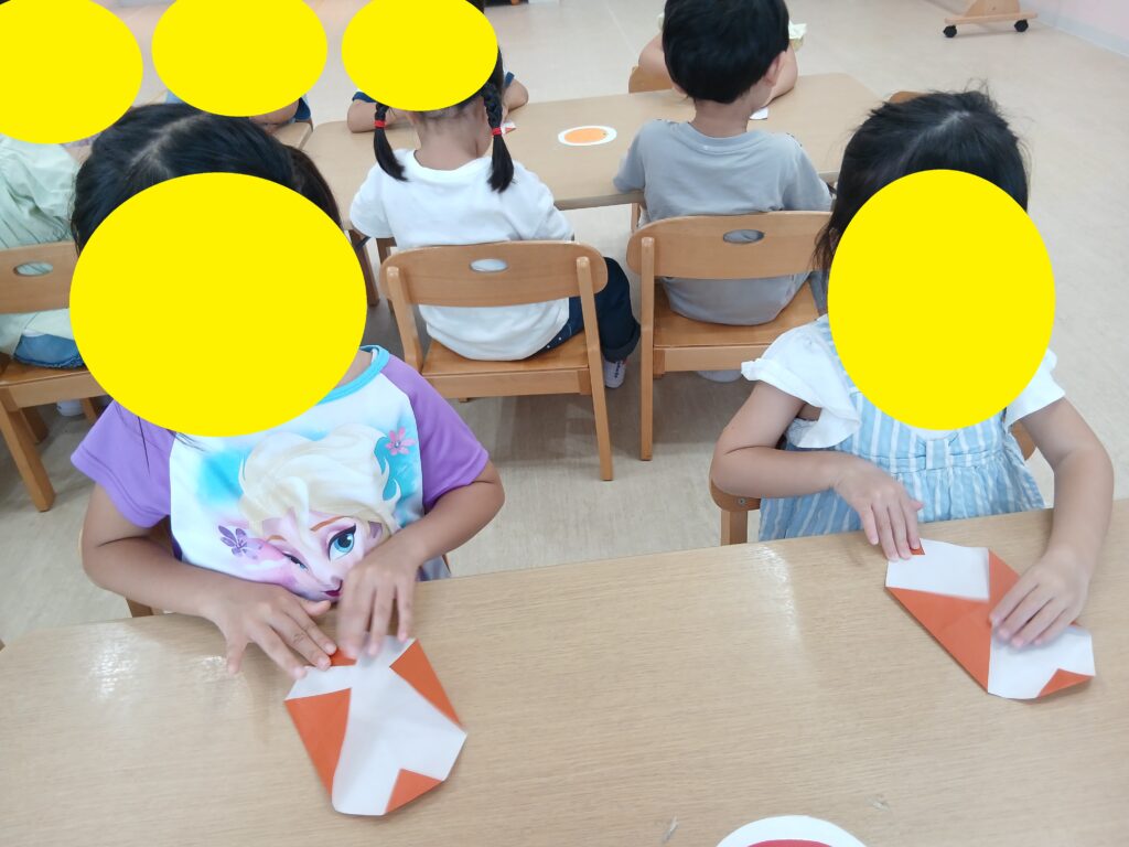 折っていくうちにクロワッサンの形に近づき、嬉しそうにお友達同士で見せ合っていました🤭🥐