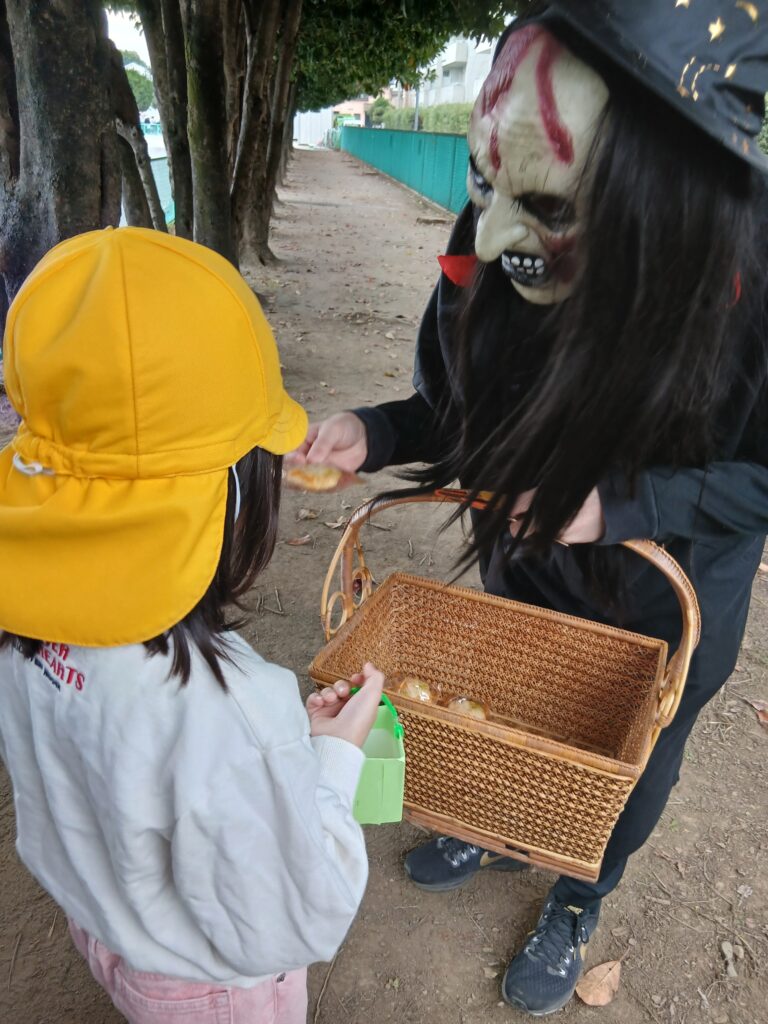 🎃HAPPY HALLOWEEN🎃 2025.10.31 83view 大宮たんぽぽ保育園 今日は、待ちに待ったハロウィンでした♪朝からテンションMaxな子どもたち!土呂公園に自分たちで作ったハロウィンのカゴを持って探索へ✨ちょっぴり強面な魔女さんを見つけ緊張しながらも「トリック オア トリート! お菓子くれないといたずらしちゃうぞ👻」と伝えて魔女さんからお菓子をもらいにいくことができたかりん組さんでした🍬💖 ◀ 前へ | たんぽぽ保育園のブログ 一覧 | 次へ ▶ 関連記事 2026.04.242歳児 こいのぼり製作🎏 2026.04.24豆腐ハンバーグ🍽️ 2026.04.231歳児 お散歩 2026.04.22🐟ぶりの照り焼き🍽️ たんぽぽ保育園のブログ
