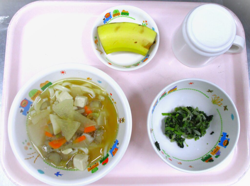 🍜けんちんうどん 2025.12.03 75view 🌈大宮たんぽぽ保育園 🍽️今日の給食 🍜けんちんうどん ほうれん草🥬の礒和え 🍌バナナ🍌 いただきます。 ◀ 前へ | たんぽぽ保育園のブログ 一覧 | 次へ ▶ 関連記事 2026.04.242歳児 こいのぼり製作🎏 2026.04.24豆腐ハンバーグ🍽️ 2026.04.231歳児 お散歩 2026.04.22🐟ぶりの照り焼き🍽️ たんぽぽ保育園のブログ