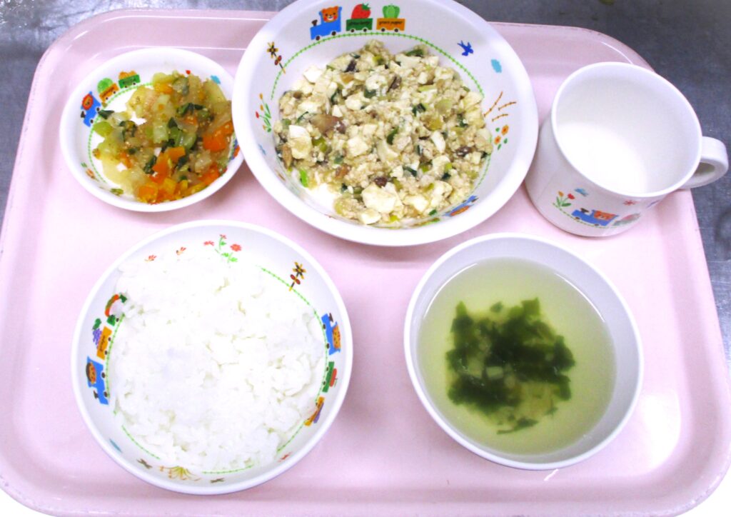 🧅🥕マーボー豆腐🍽️ 2025.12.11 68view 🌈大宮たんぽぽ保育園🏫 今日の給食🍽️ 🍚ごはん🍚 中華スープ マーボー豆腐 大根🥗サラダ いただきます。 ◀ 前へ | たんぽぽ保育園のブログ 一覧 | 次へ ▶ 関連記事 2026.04.242歳児 こいのぼり製作🎏 2026.04.24豆腐ハンバーグ🍽️ 2026.04.231歳児 お散歩 2026.04.22🐟ぶりの照り焼き🍽️ たんぽぽ保育園のブログ