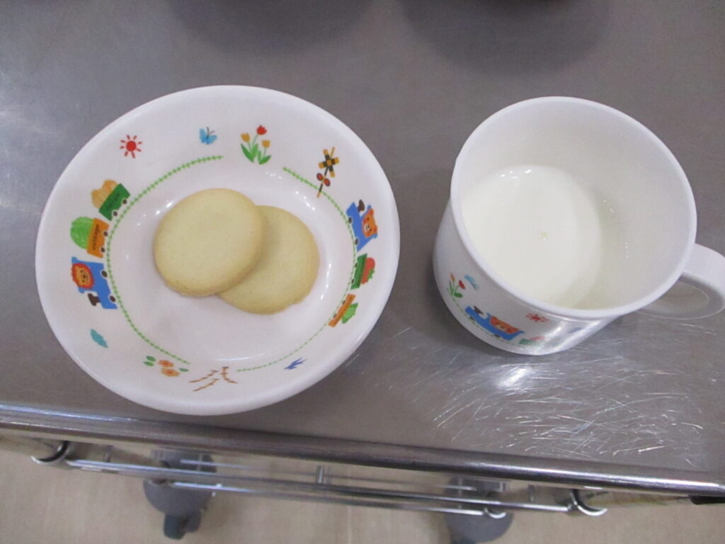 美味しい給食をたくさん食べて、ゆっくり休んだら「おやつ」を食べて、もうひと遊び(o^―^o)ニコ