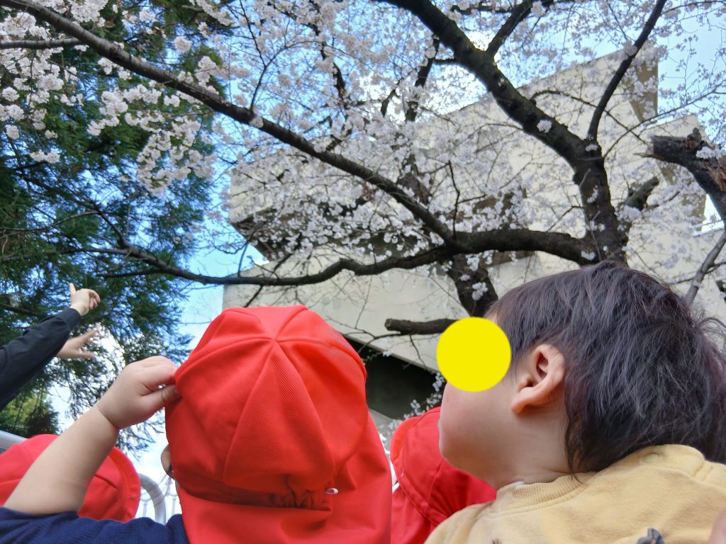 ぽかぽかとした春の陽気の中、桜を見つけると子どもたちは空を見上げてじっと眺めていましたよ🌸