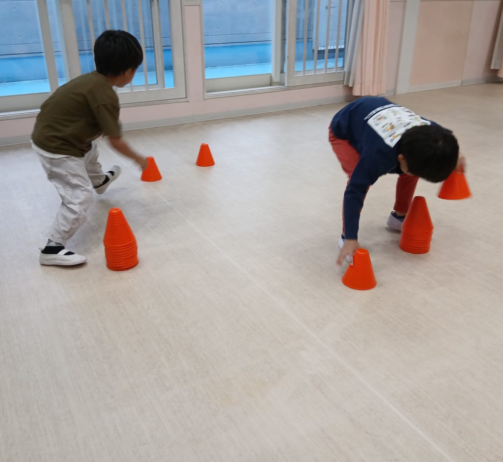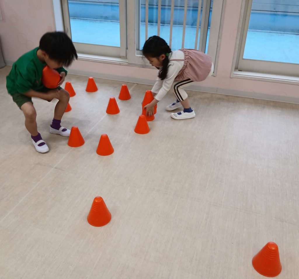 コーンを並べる時も、広げて置いたりロケットや丸の形をつくったりと創造力が豊かで驚きました🚀😮