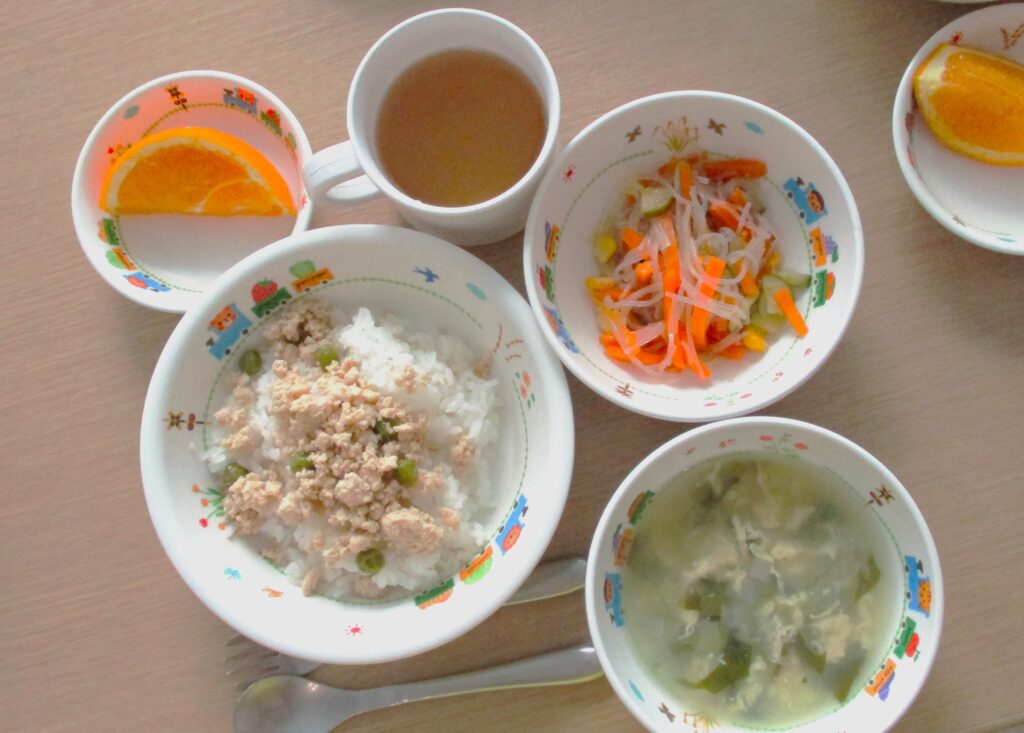 高野豆腐 2023.08.17 25view 今日の 給食 高野豆腐のそぼろ丼・わかめスープ 春雨のサラダ・オレンジ いただきます。 ◀ 前へ | たんぽぽ保育園のブログ 一覧 | 次へ ▶ 関連記事 2026.04.242歳児 こいのぼり製作🎏 2026.04.24豆腐ハンバーグ🍽️ 2026.04.231歳児 お散歩 2026.04.22🐟ぶりの照り焼き🍽️ たんぽぽ保育園のブログ