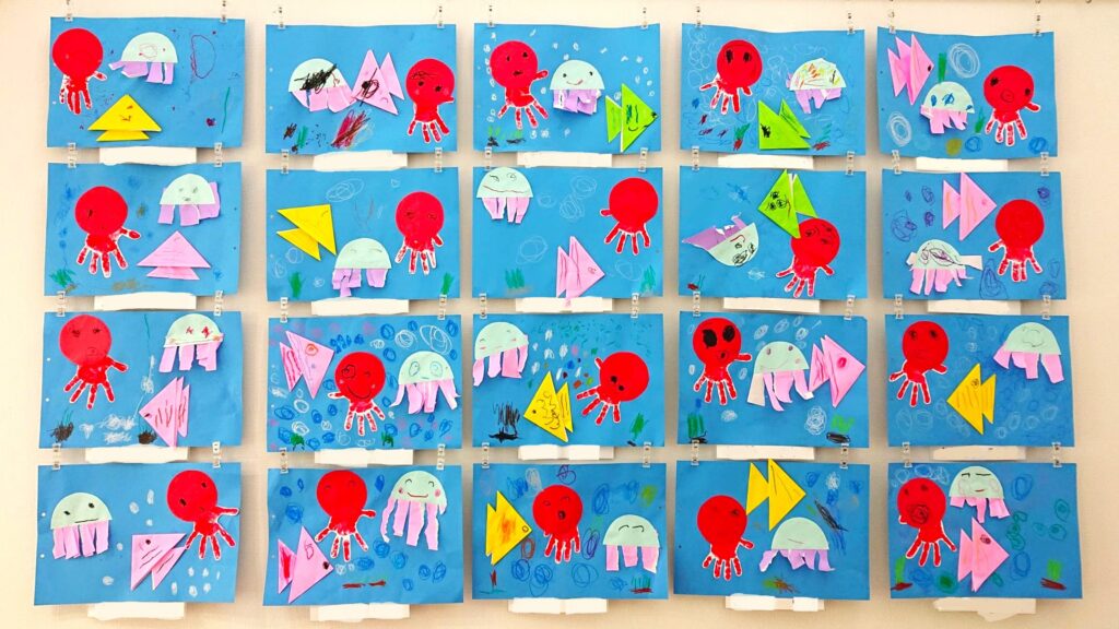 作品 海の生き物🐙 2023.09.08 20view 大宮たんぽぽ保育園 作品 ◀ 前へ | たんぽぽ保育園のブログ 一覧 | 次へ ▶ 関連記事 2026.04.242歳児 こいのぼり製作🎏 2026.04.24豆腐ハンバーグ🍽️ 2026.04.231歳児 お散歩 2026.04.22🐟ぶりの照り焼き🍽️ たんぽぽ保育園のブログ