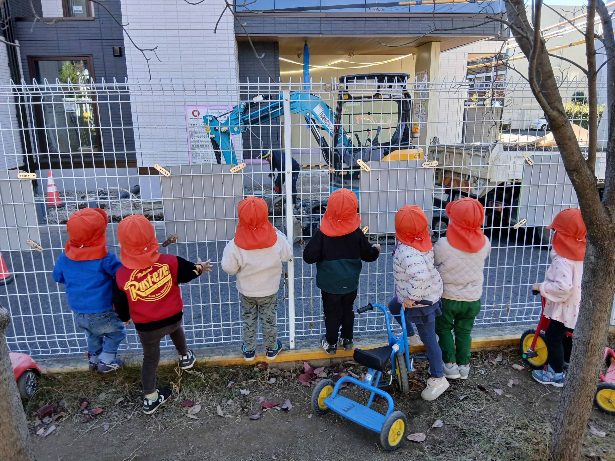 2025.12.05 2歳児 大好きはたらく車💕 保育園向かいの工事現場。 晴れの日は毎日、工事現場のチェックをしているいちご組さん🤭 今日はショベルカーが現場入り✨ 現場が動いている時は、遊んでいる合間でも急いで観察へ💨 みんな釘付けでした😍💕 大宮たんぽぽ保育園 -