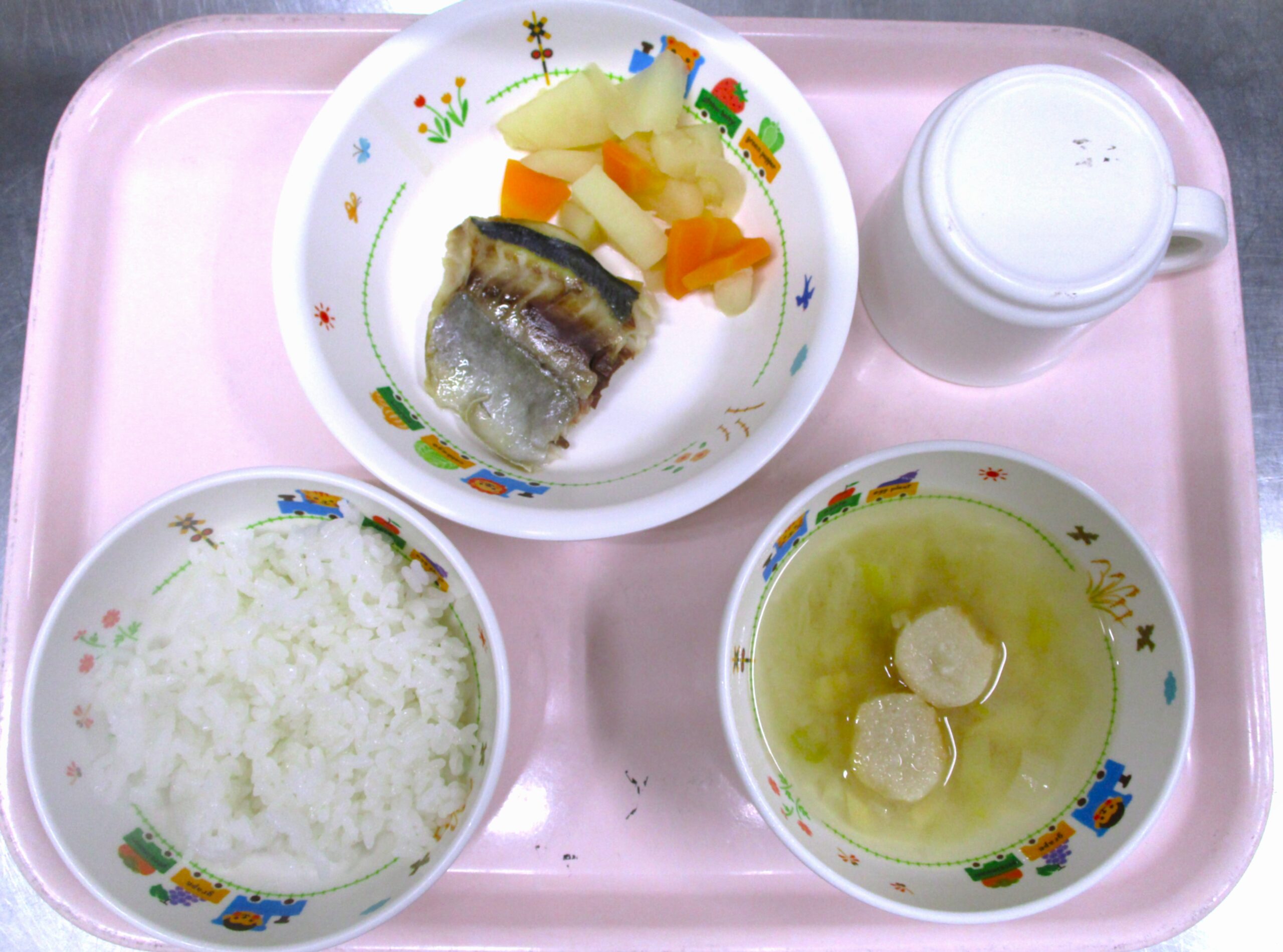 2025.12.01 🐟あじの塩焼き🍽️ 大宮たんぽぽ保育園🌈 今日の給食🏫 🍚ごはん🍚 油揚げのみそ汁🍲 🐟あじの塩焼き 🥔じゃがいもの煮物 いただきます。 -