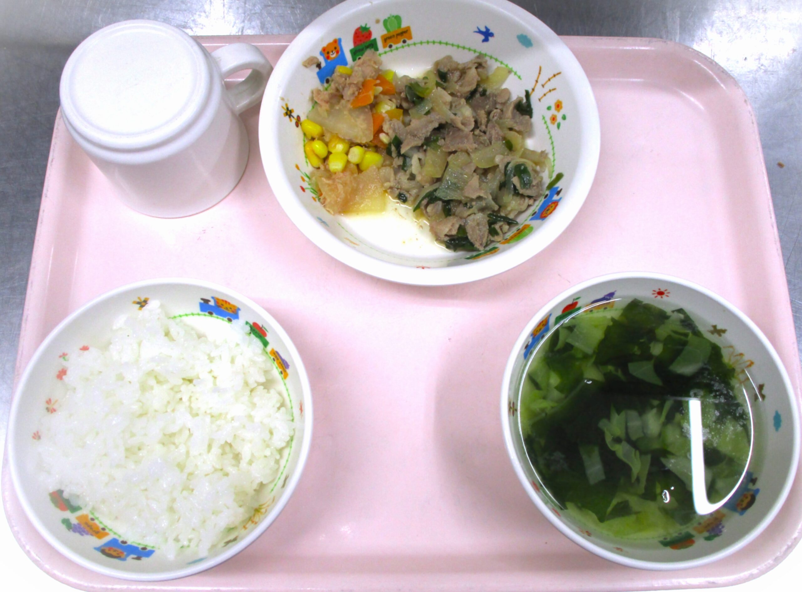 2025.12.02 🥘プルコギ風 🏫大宮たんぽぽ保育園 🌈今日の給食 🍚ごはん🍚 🥬キャベツスープ 🥘プルコギ風 大根🥗サラダ いただきます。 -
