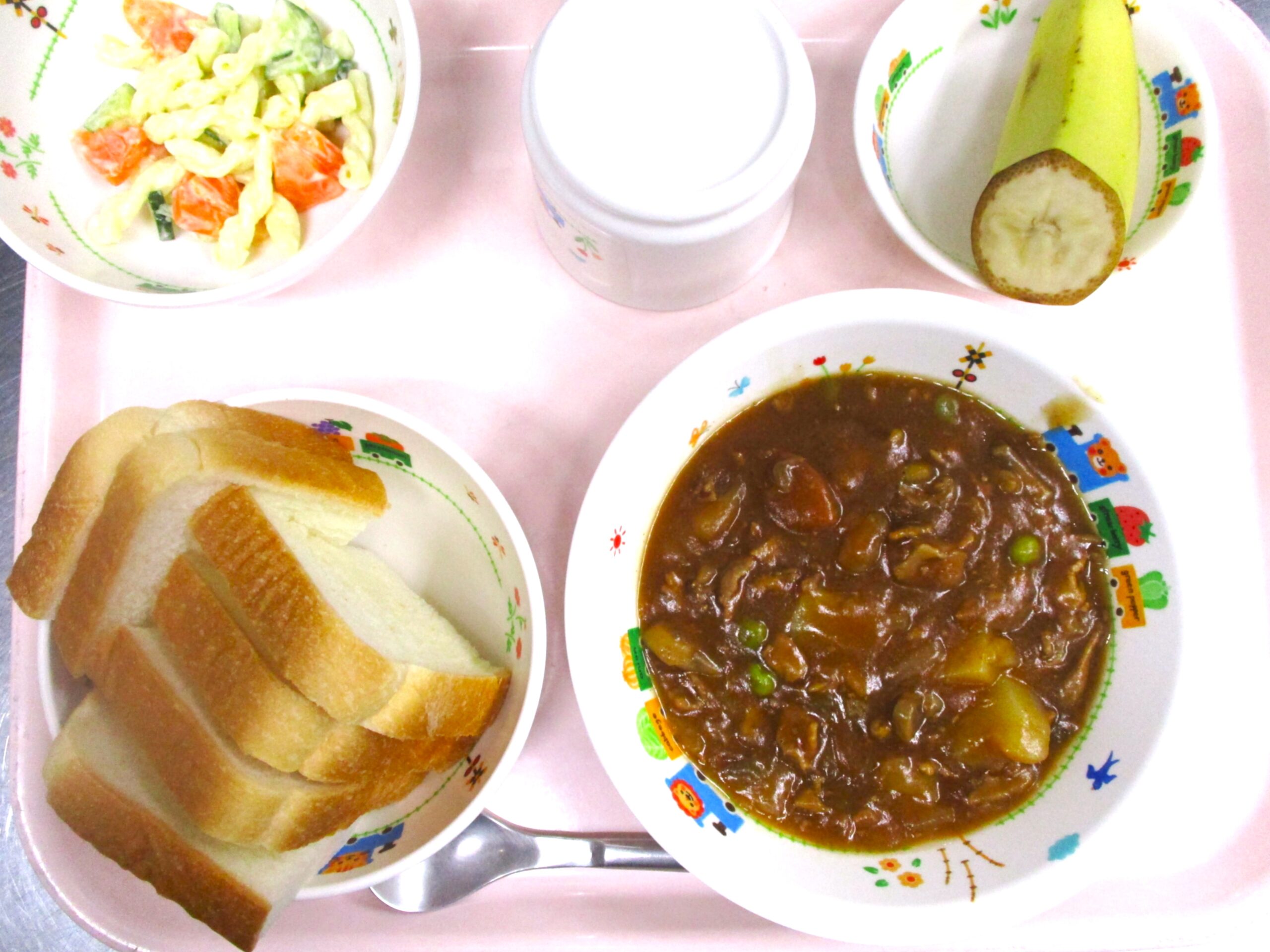 2025.12.09 🍲ポークシチュー🍽️ 🌈大宮たんぽぽ保育園 🍴今日の給食 🍞食パン🍞 🍲ポークシチュー マカロニ🥗サラダ 🍌バナナ🍌 いただきます。 -