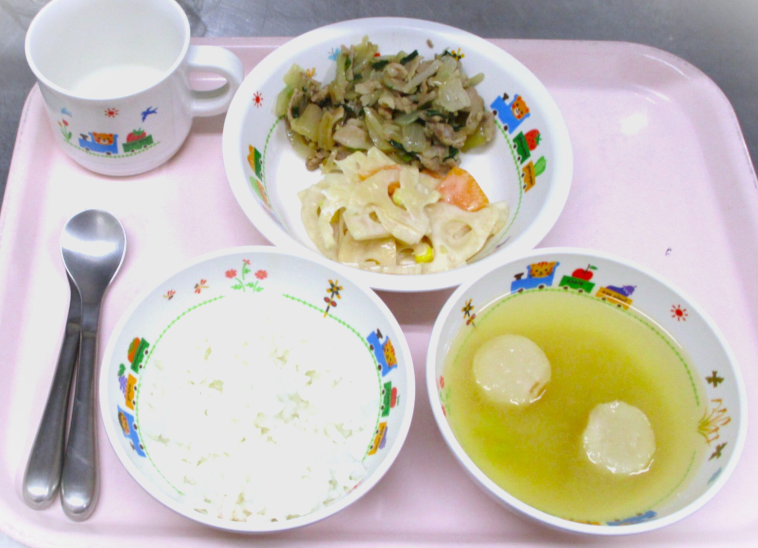 2025.11.12 🍽️スタミナ炒め🍗🧅🥬 大宮たんぽぽ保育園🏫 今日の給食🌈 🍚ごはん🍚 🍜みそ汁 スタミナ炒め れんこんのマヨ和え いただきます。 -