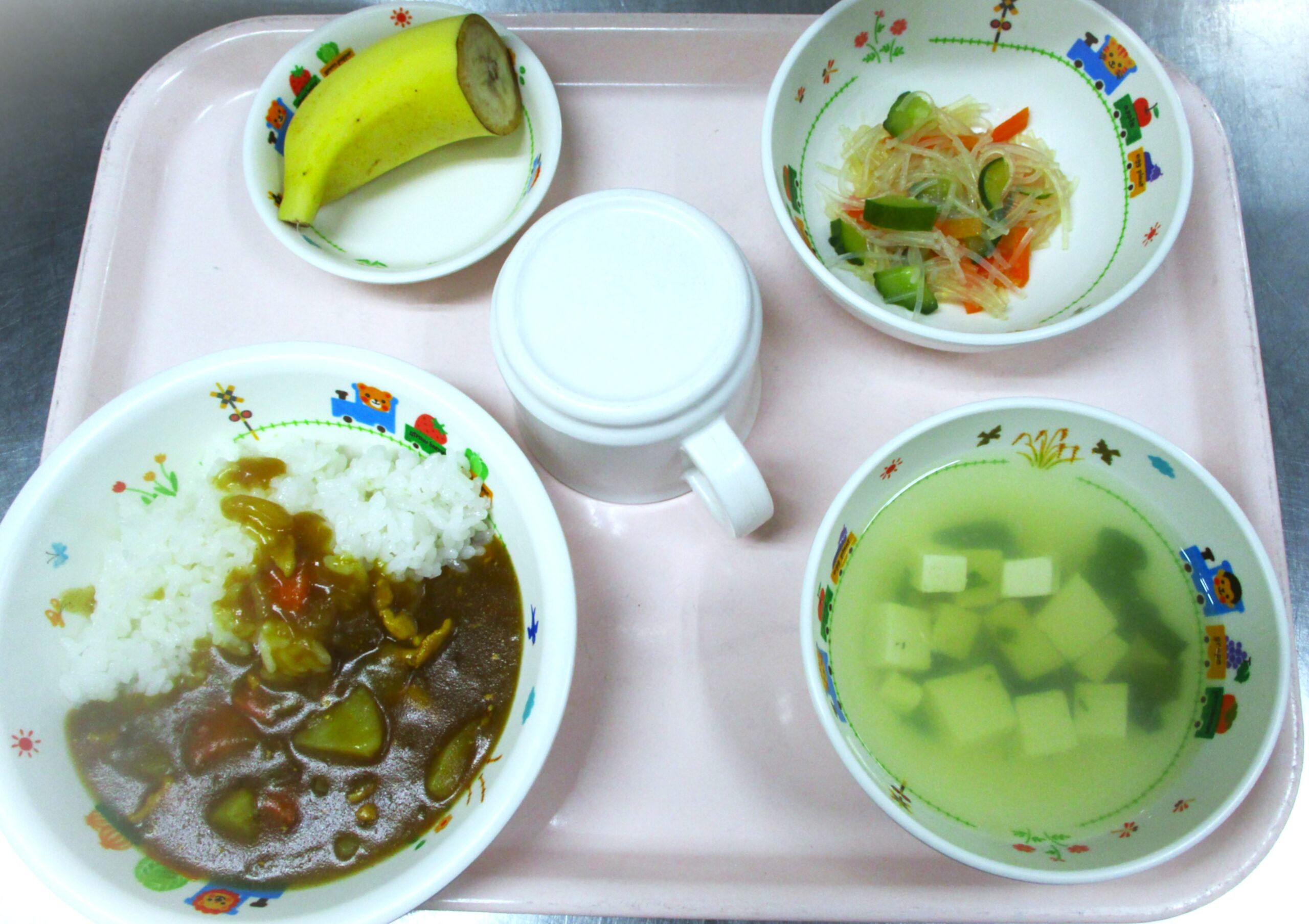 2025.10.17 チキンカレー 大宮たんぽぽ保育園 今日の給食 チキンカレー スープ 春雨の🥗サラダ いただきます