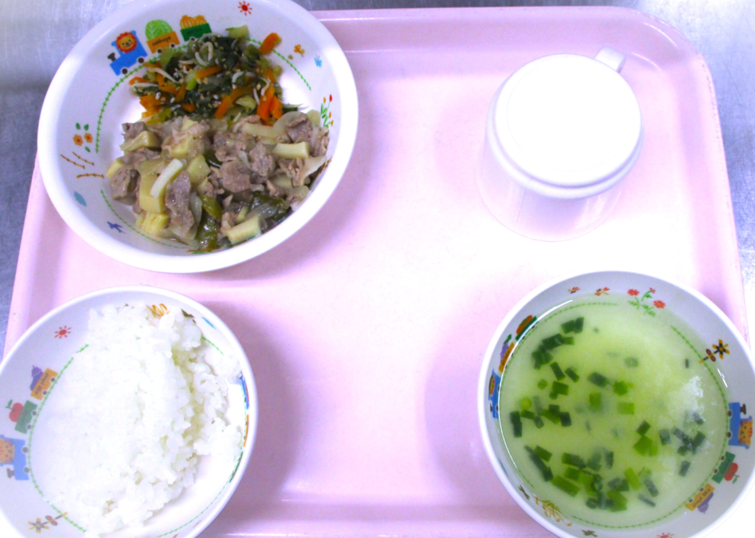 2025.10.21 豚肉の中華炒め 🌈大宮たんぽぽ保育園 🏫今日の給食🍽️ 🍚ごはん🍚 🍲スープ 豚肉の中華炒め チンゲン菜としらすの🥗サラダ いただきます。 -