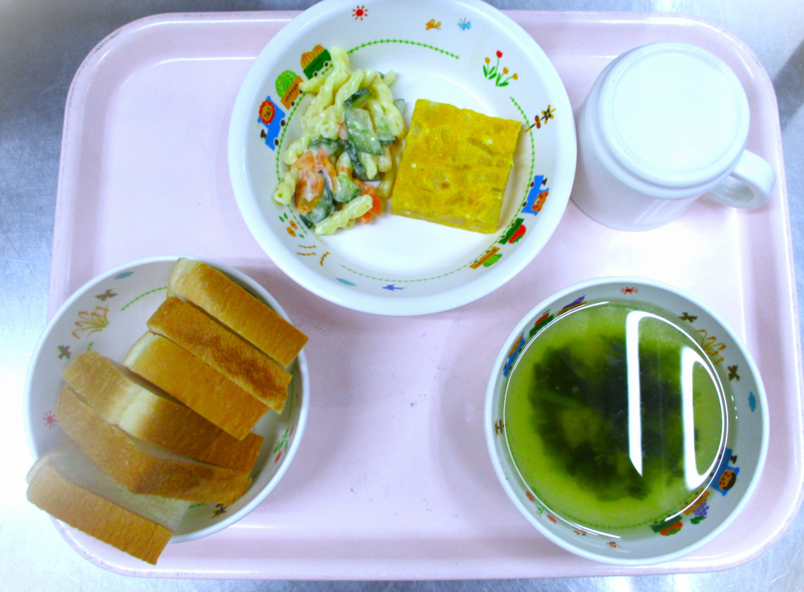 2025.10.22 🍞パン🍞 🌈大宮たんぽぽ保育園 🏫今日の給食🍽️ 🍞パン🍞 🍲コンソメスープ そぼろ煮 マカロニ🥗サラダ いただきます。 -