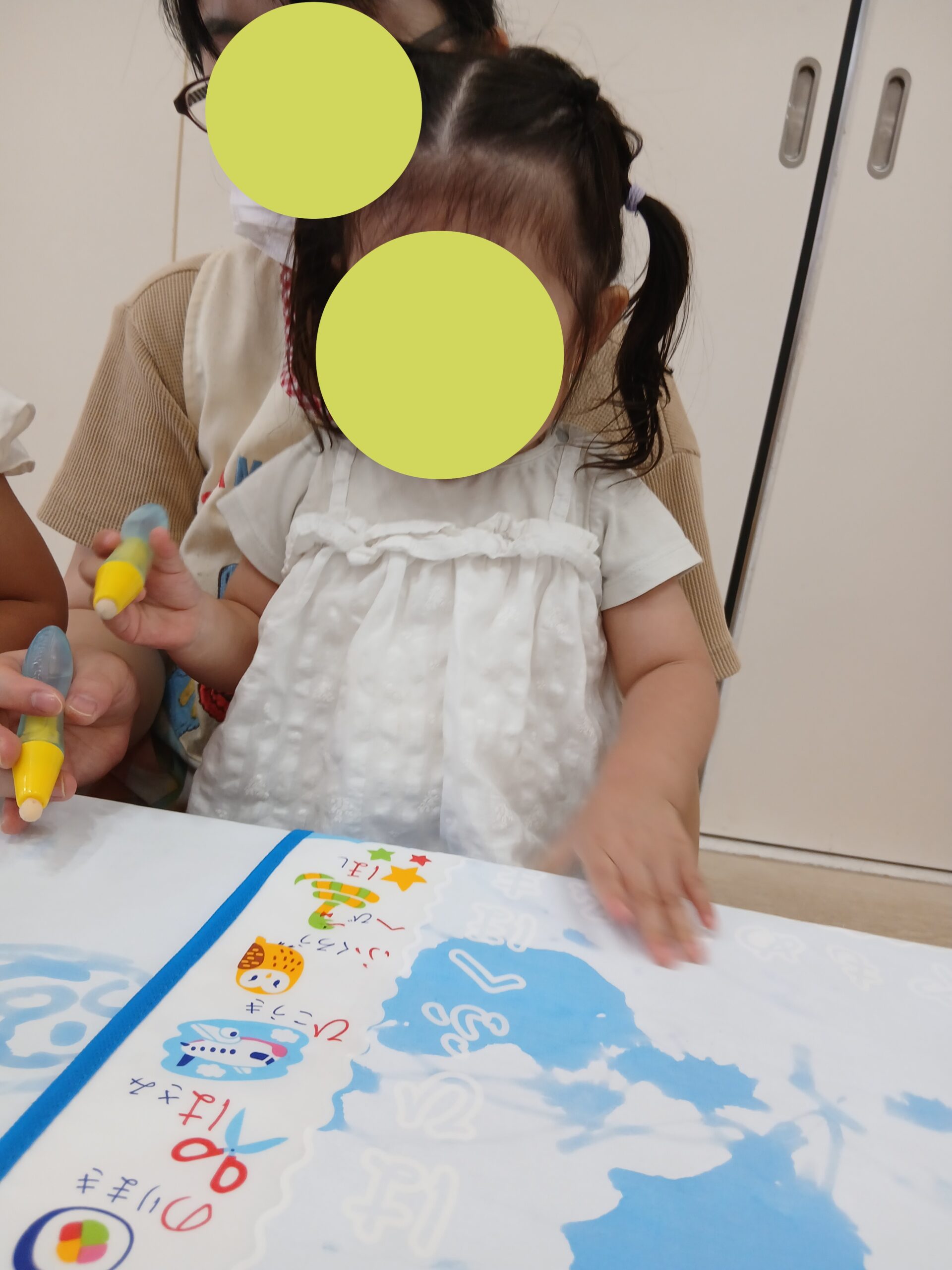 2025.09.03 楽しいお絵描き🖍 大宮たんぽぽ保育園 水で描けるペンを使ってみんなでお絵描きをしました!☺️✨ ぐるぐるとまるを描いたり、ポンポンと点を描いて楽しんでいました。 先生がアンパンマンを描くと、「アンパンマン!✨」と喜ぶ姿が可愛かったです!💕 -