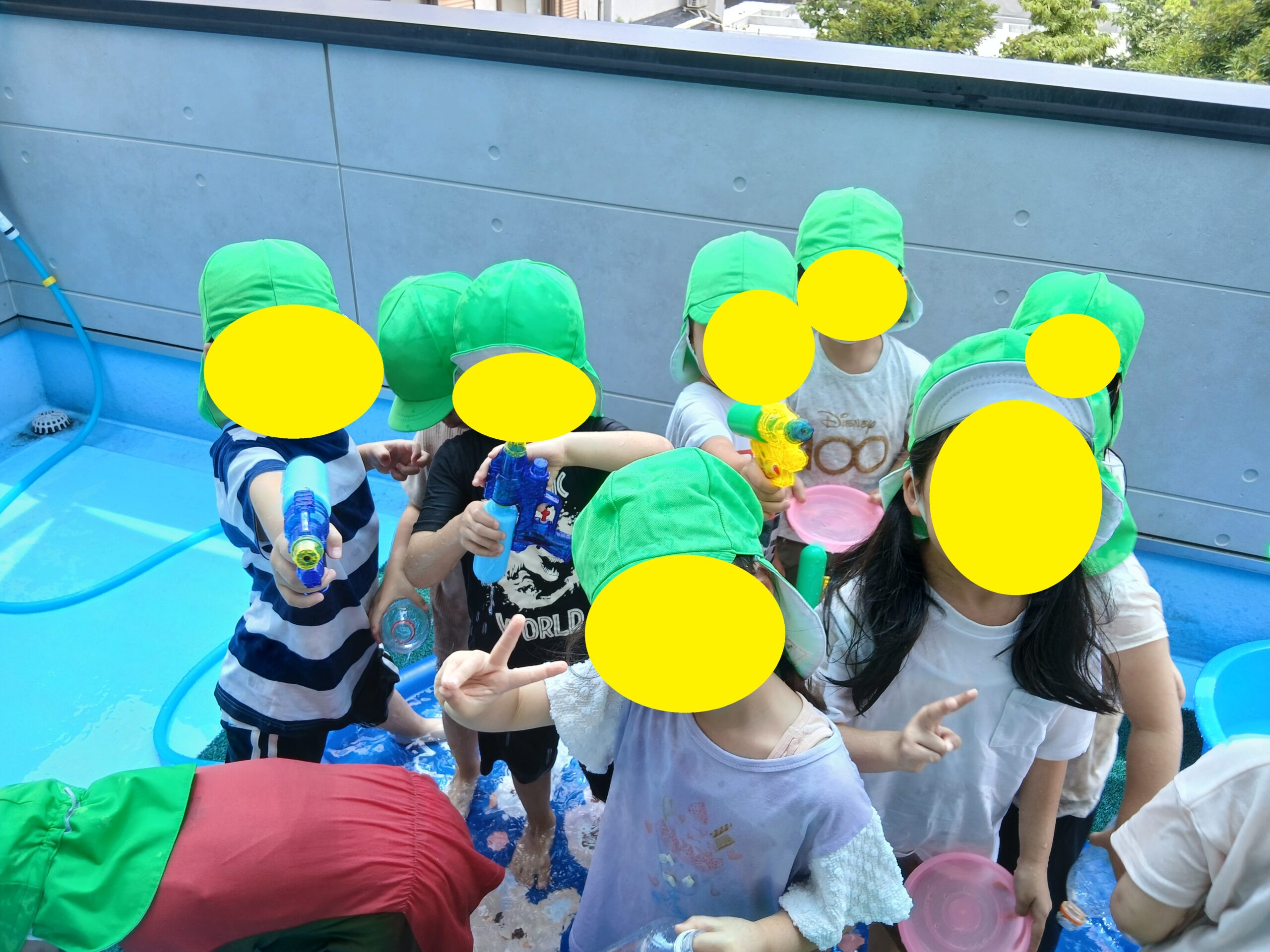 2025.07.17 水遊び🎶 大宮たんぽぽ保育園 今日は、水遊びをしました!登園するなり「今日は水遊びできる?」と先生に聞いたり、窓のほうに向かって「お水遊びがしたいから雨降らないでね」とお願いをしたりしているお友だちもいて、楽しみにしている様子が伝わってきたなつめ組さん🤭❤️ 先生やお友だちと水鉄砲を使って水を掛 -