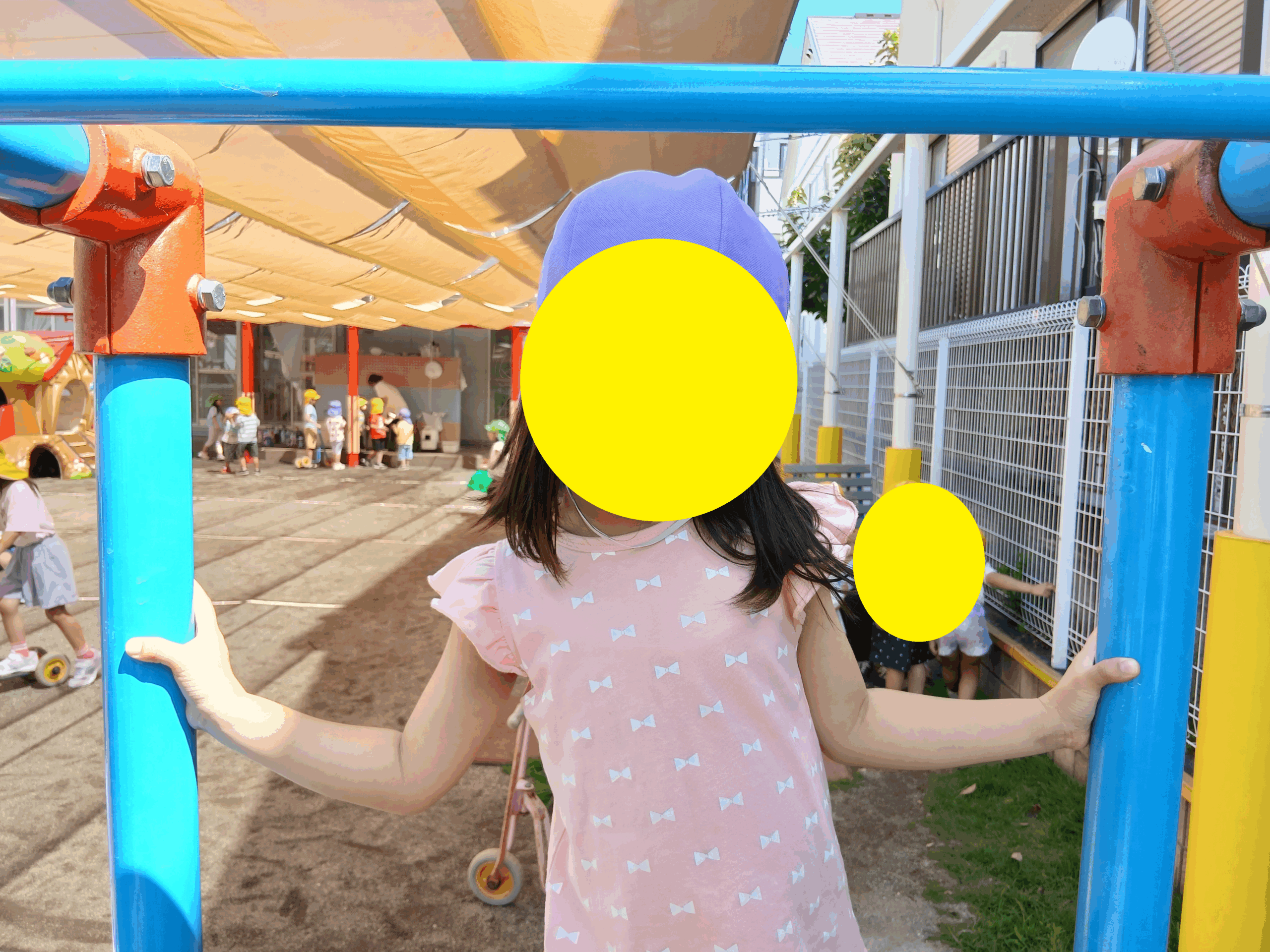 2025.07.18 園庭遊びをしたよ 今日のもも組さんは園庭遊びをしました♪ 園庭では三輪車で遊んだり、うんていや鬼ごっこをしたりして楽しみました😊 たくさん身体を動かし、たくさん汗かいた後には水筒のお水を飲んで「冷たくて美味しい!」と言っていましたよ🤭💕 -