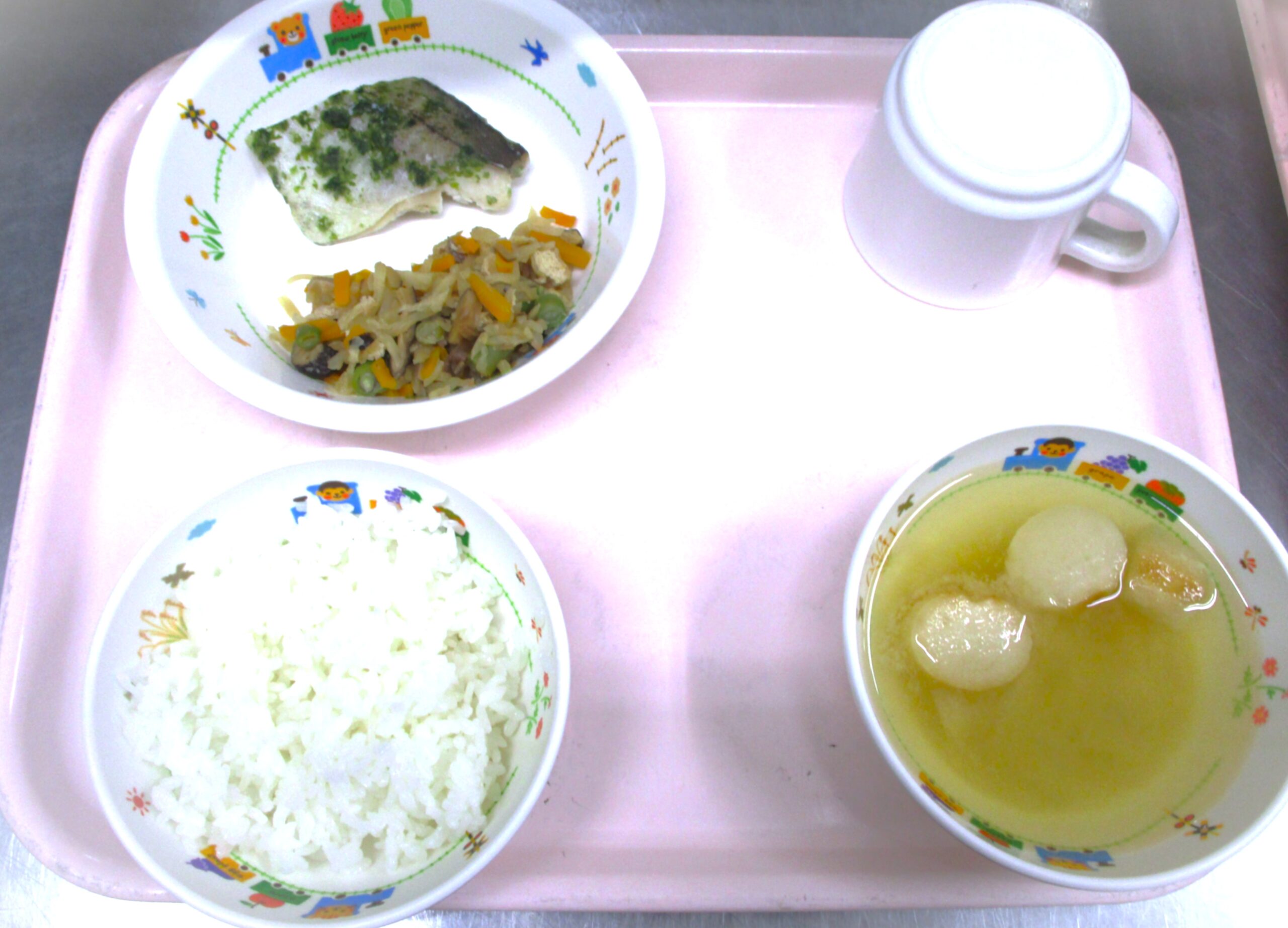 2025.07.16 🐟白身魚の磯辺焼き🍽️ 大宮たんぽぽ保育園🌈 今日の給食🍴 🍚ごはん🍚 お麩のみそ汁🍜 白身魚の磯辺焼き🐟 切干大根煮 いただきます -