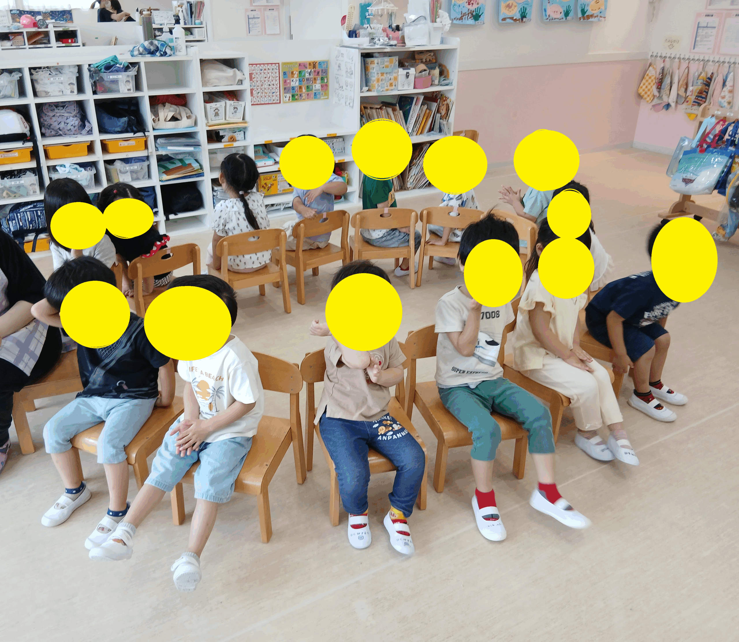 2025.07.10 椅子取りゲームをしたよ 今日は椅子取りゲームをしました! クラスでは初めての椅子取りゲームをしたのでルール説明をしている間は皆楽しみにしている様子が見られました😊 ゲームが始まるとピアノの音に合わせながら歌を歌い楽しむ様子が見られ、音楽が止まり、座れた子は大喜びでした🤭💕 これからもいろんなゲームに挑戦 -